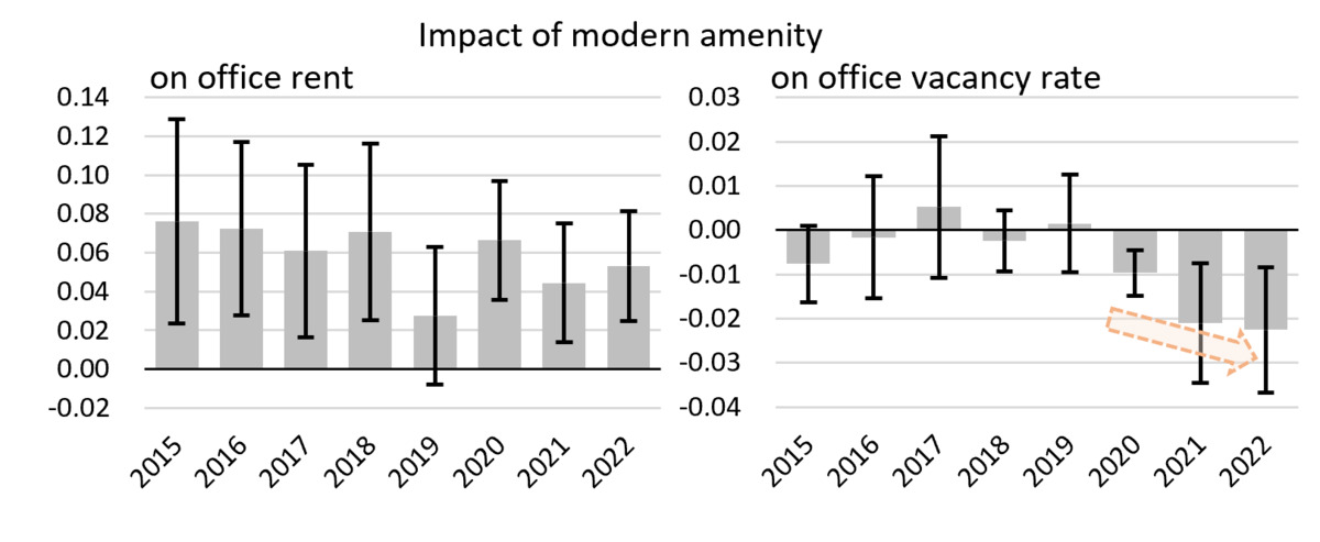 With the rapid spread of telecommuting since the COVID-19 pandemic, companies have been relocating to high-end business centers, thereby enhancing the workplace experience for employees, a phenomenon called the "flight to quality." However, this trend’s impact on rents and vacancy rates in individual office buildings has not been extensively studied. To determine the effects of the flight-to-quality phenomenon on individual buildings, we examine the impact of modern amenities, which directly influence employee lifestyles, on rents and vacancy rates in the Tokyo office market. Using a propensity score-based quasi-experimental method, we find that commercial properties with such modern amenities command higher rents and experience lower vacancy rates than those without. The difference in vacancy rates has increased since 2020. However, the significance of these amenities diminishes for properties less competitive in age, size, and location. The results indicate that the "flight to quality" may further polarize the office real estate market into two categories: one for high-end buildings experiencing increasing demand, and another for those with modest amenities experiencing decreasing demand. The findings have implications for office building owners/investors and the government, make educated decisions as to whether to invest in modern amenities, join the quality competition, or encourage urban restructuring.